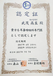 日本耳鼻咽喉科学会認定専門医 |